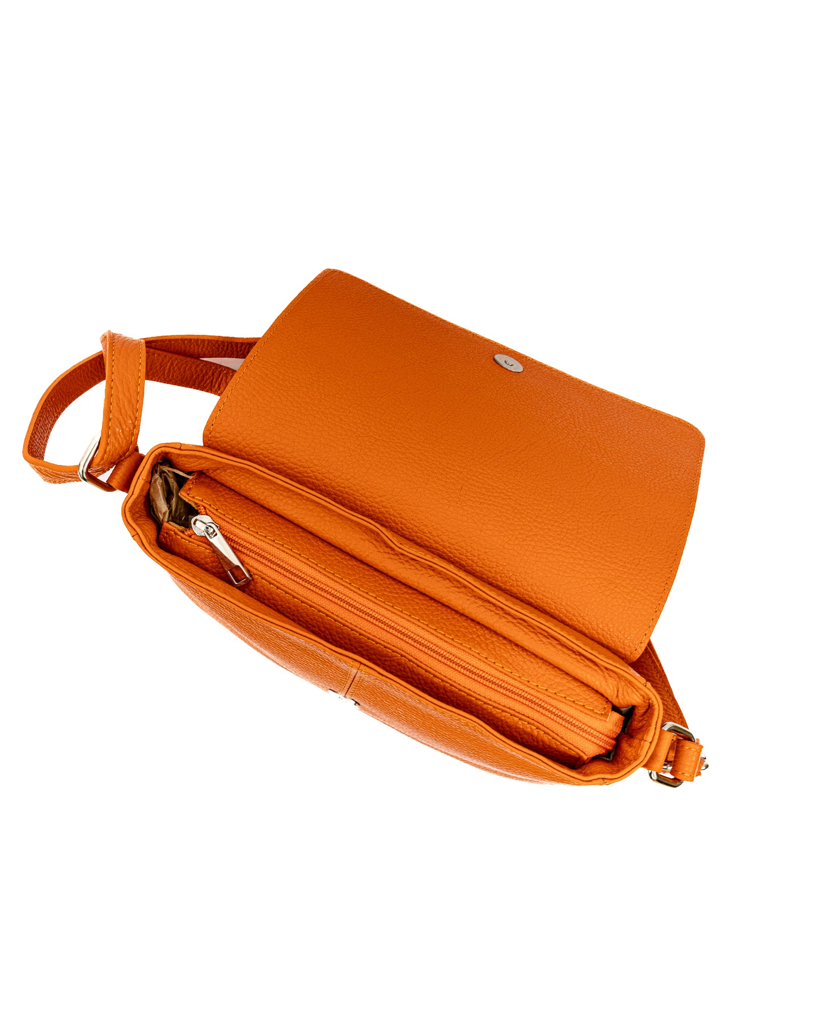 Scomparto principale con zip, patta aggiuntiva e bottone magnetico – sicuro e adatto all’uso quotidiano