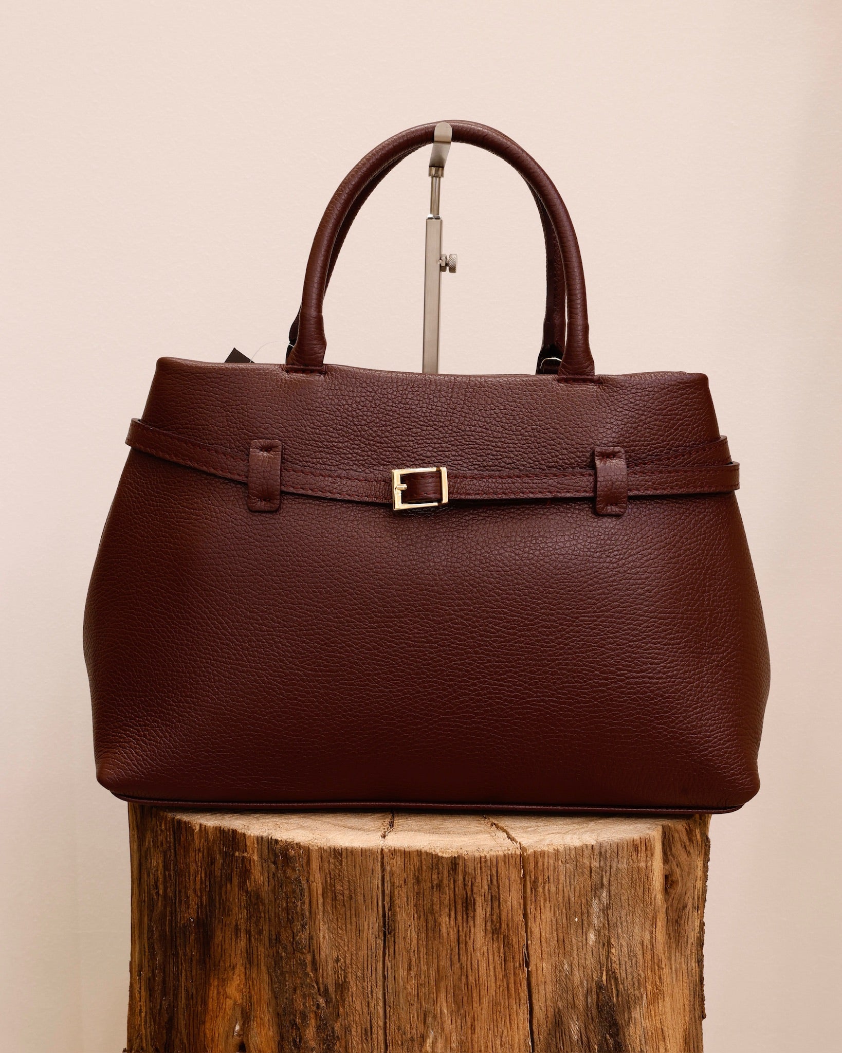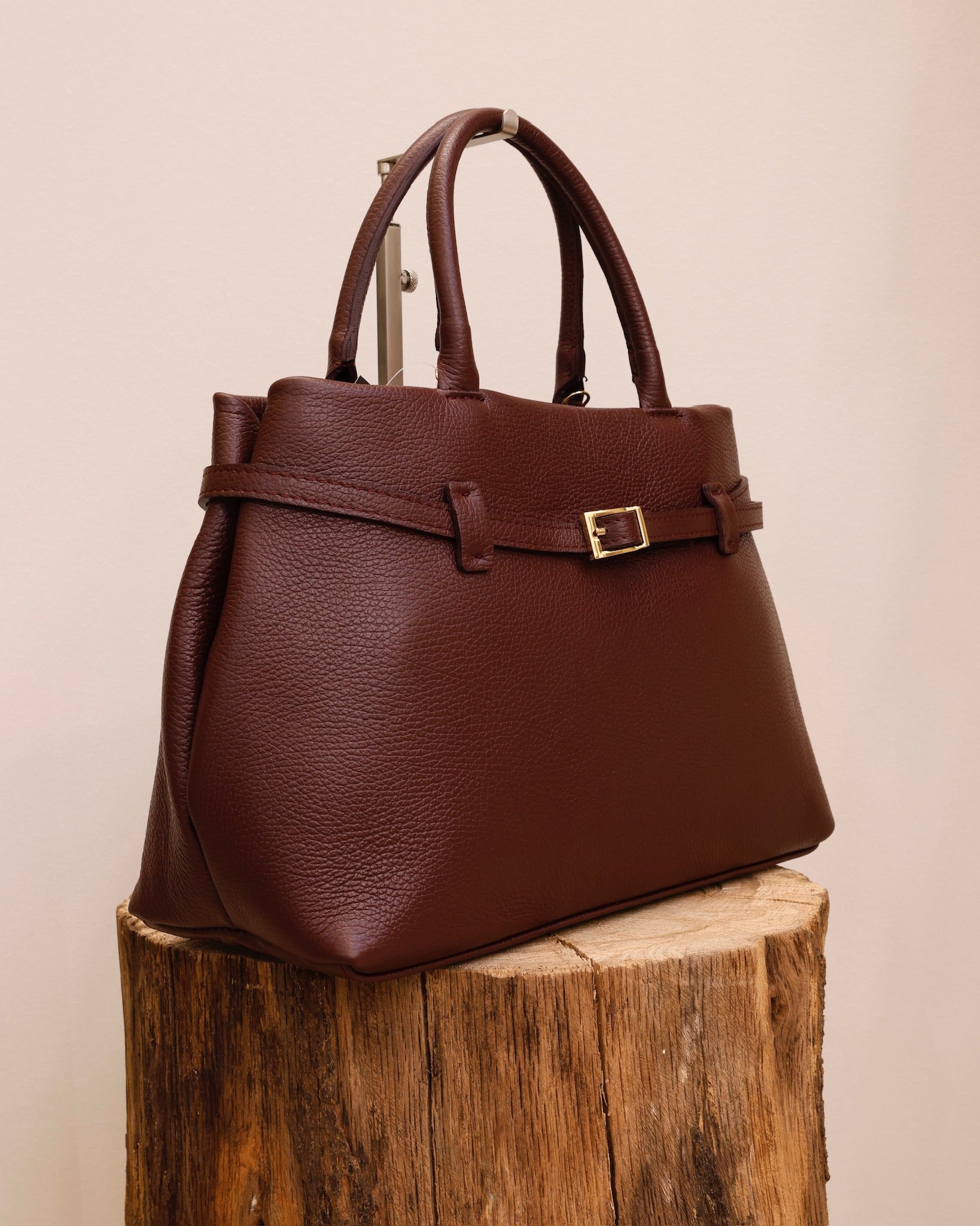 Marlene ist eine elegante Alltagstasche aus italienischem Kalbsleder mit stabiler Form, goldenen Details und charakteristischem Gürtel-Design. Eine zeitlos-edle Begleiterin für Alltag, Büro und klassische Looks.